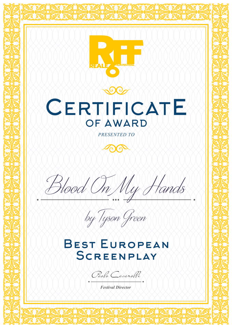 Another WIN for "Blood On My Hands" This time BEST EUROPEAN SCREENPLAY, winning out of all that took part from all over Europe.
